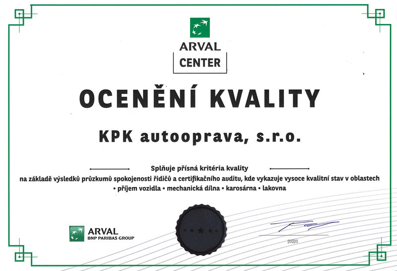 Pro rok 2024 se stal KPK Autoopravna s.r.o. vítězem soutěže neautorizovaných servisů Arval.